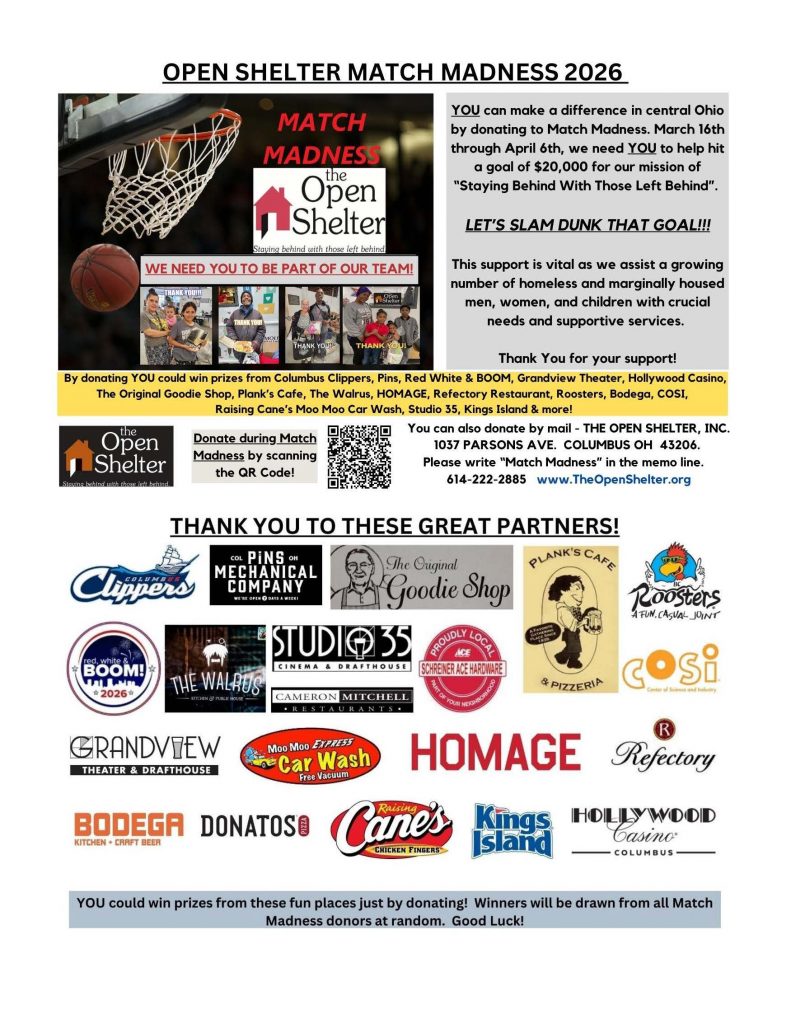 The Open Shelter is an Advocacy Center & Day Services Shelter for homeless and marginally-housed people in Central Ohio. We provide crucial needs directly to those in crisis. Coordinated, supportive services are also provided, directly or by referral.